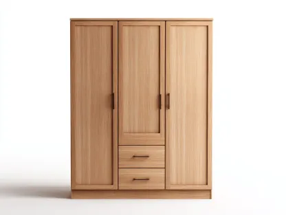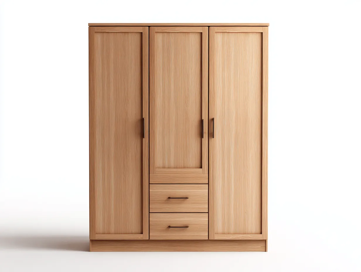 Armoire 3 portes bois et panneaux blancs 120x55x180 cm style contemporain
