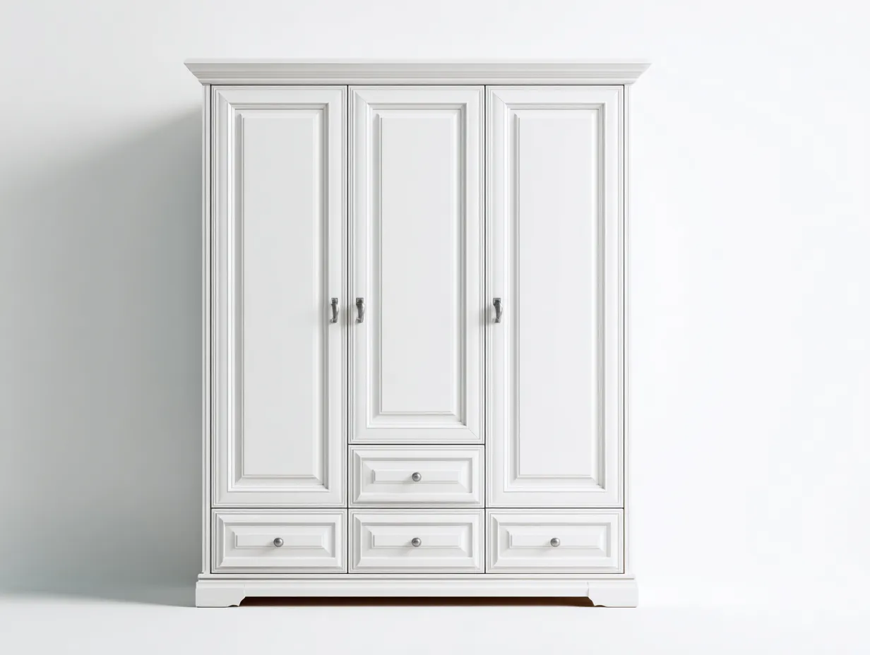 Armoire 3 portes bois peint 180x60x200 cm - Blanc - Style classique fonctionnel