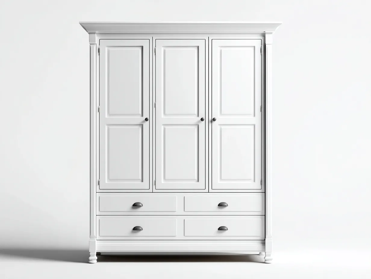 Armoire 3 portes en bois 180x55x200 cm - Blanc - Style classique pour chambre
