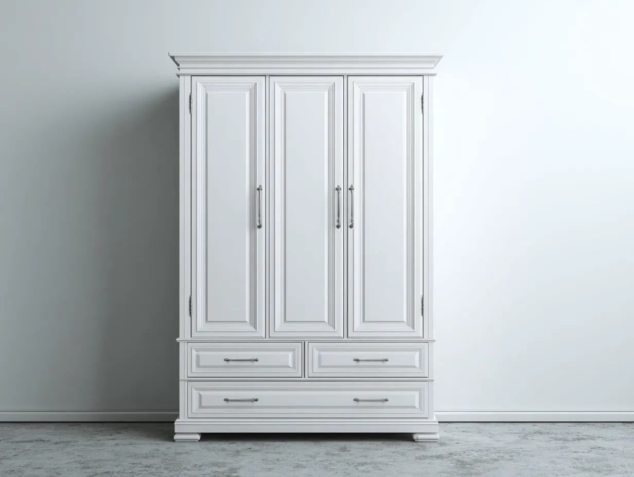 Armoire 3 portes panneaux bois 120x55x180 cm blanc style classique