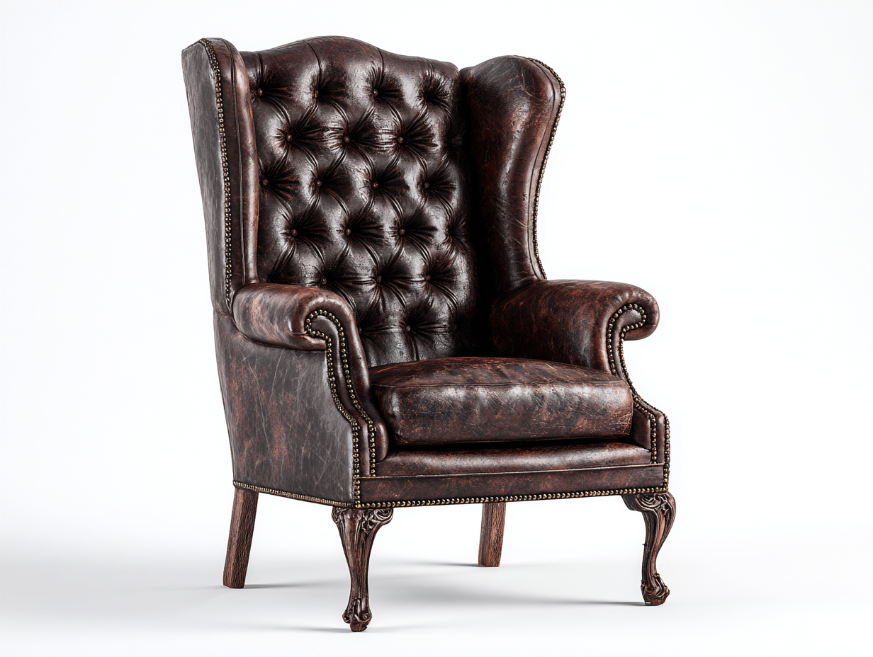 Fauteuil en cuir capitonné 75x80x105 cm marron style classique