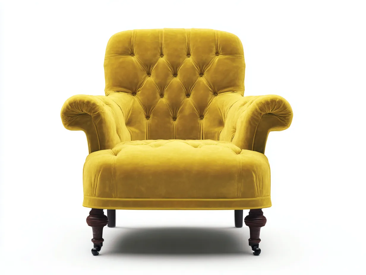 Fauteuil en tissu capitonné 88x82x102 cm - jaune - style classique